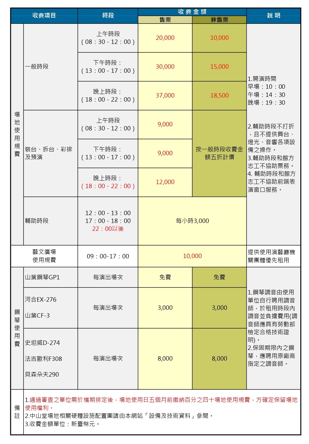 | 四、 | 敬請閱覽「場地資訊」相關公告,留意中山堂整修、設備維護等施工期間。 |